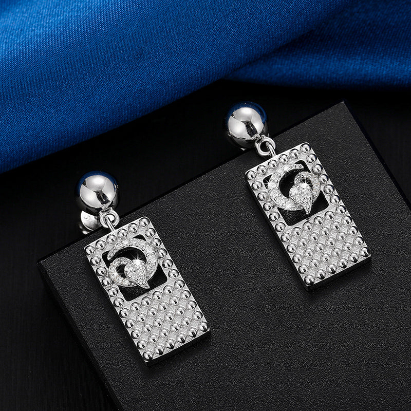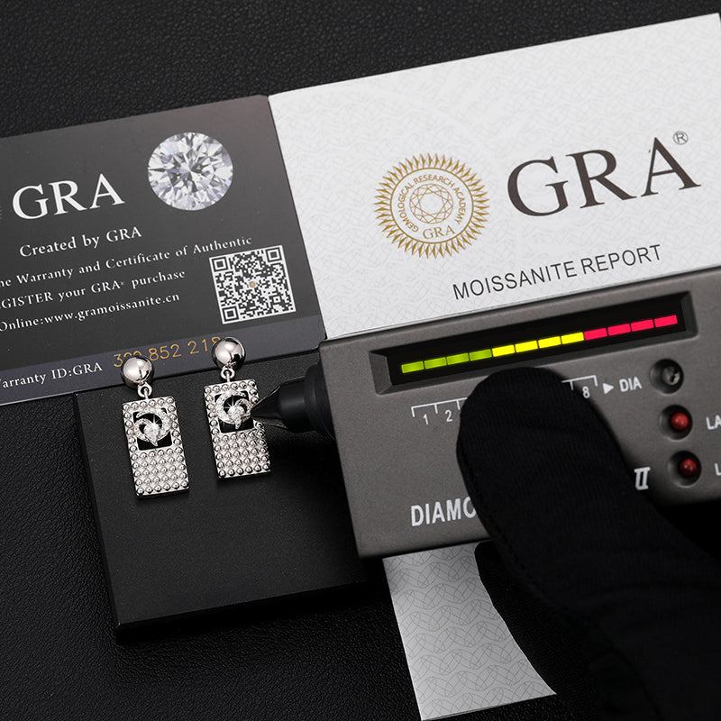 MOISSANITE SQUARE MOON DROP EARRINGS IN STERLING SILVER