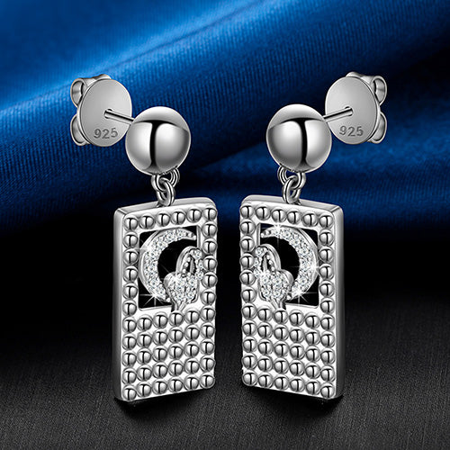Introducing our Moissanite Square Moon Drop Earrings in Sterling Silver, a striking combination of elegance and celestial beauty. These exquisite earrings feature radiant rectangular moissanite stones complemented by delicate moon accents, all crafted from premium sterling silver. Perfect for those who appreciate unique and luxurious jewelry, these earrings add a touch of sophistication and sparkle to any ensemble. Elevate your style with these enchanting and timeless accessories. 🌙💎