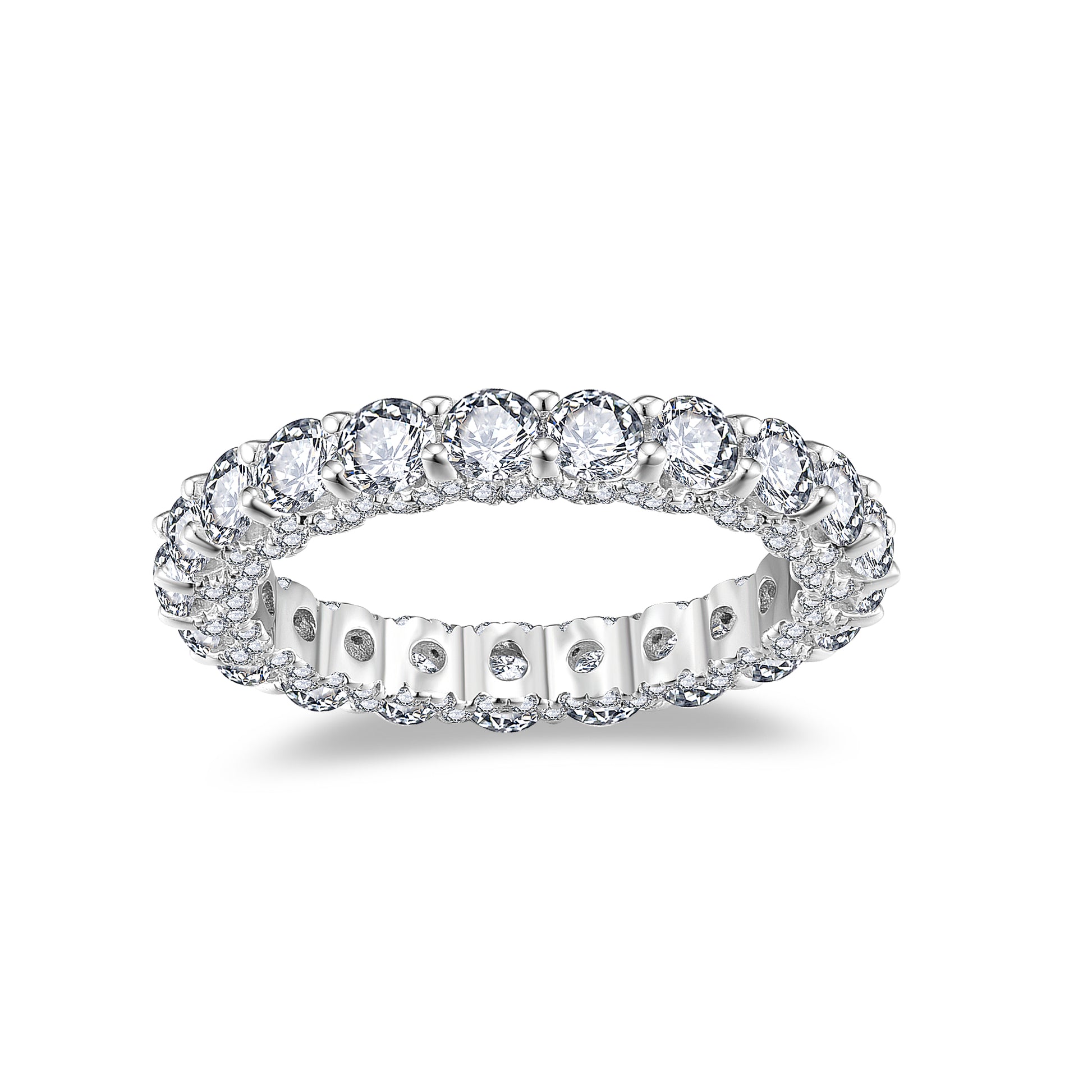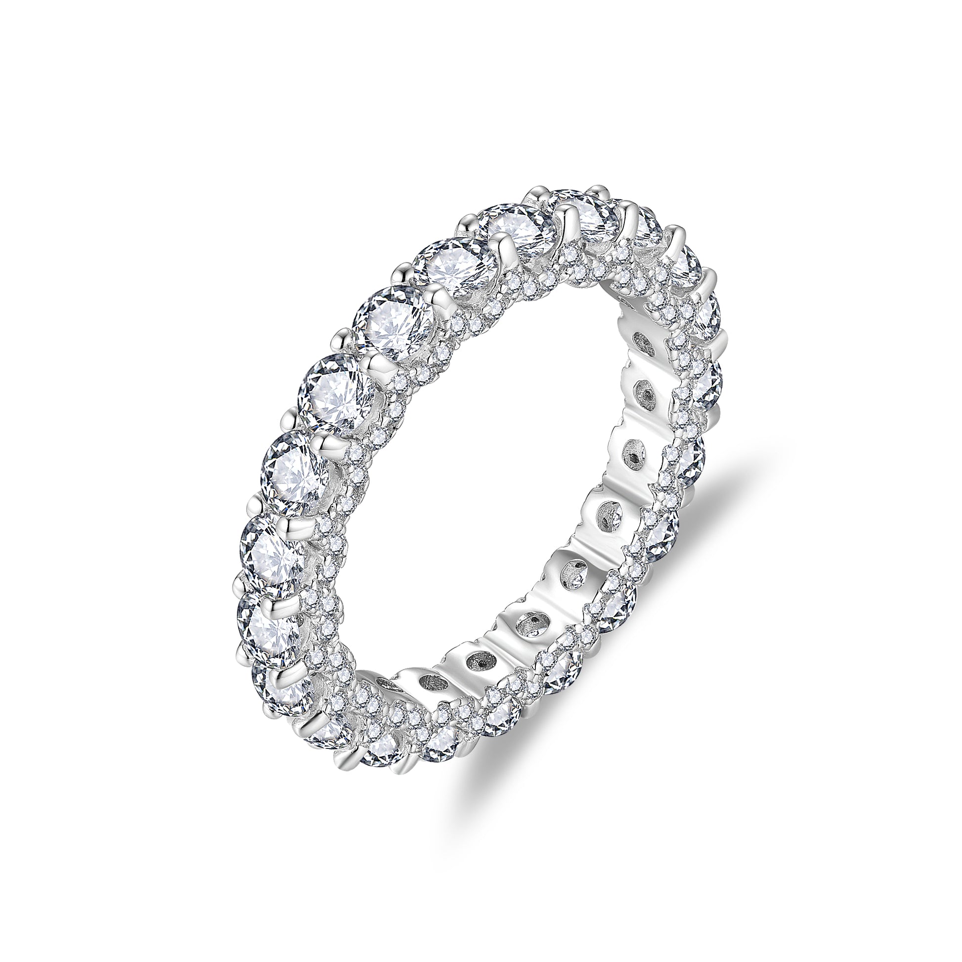 MOISSANITE TENNIS ETERNITY BAND RING WITH SIDE HALO IN STERLING SILVER
