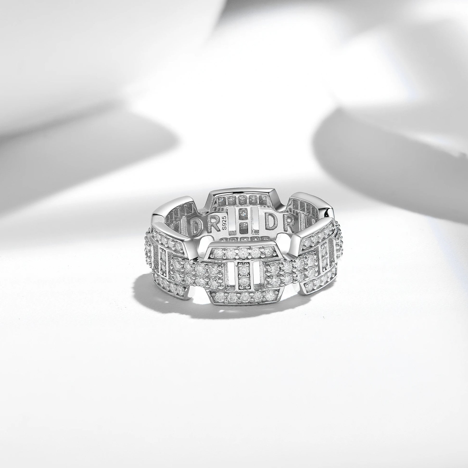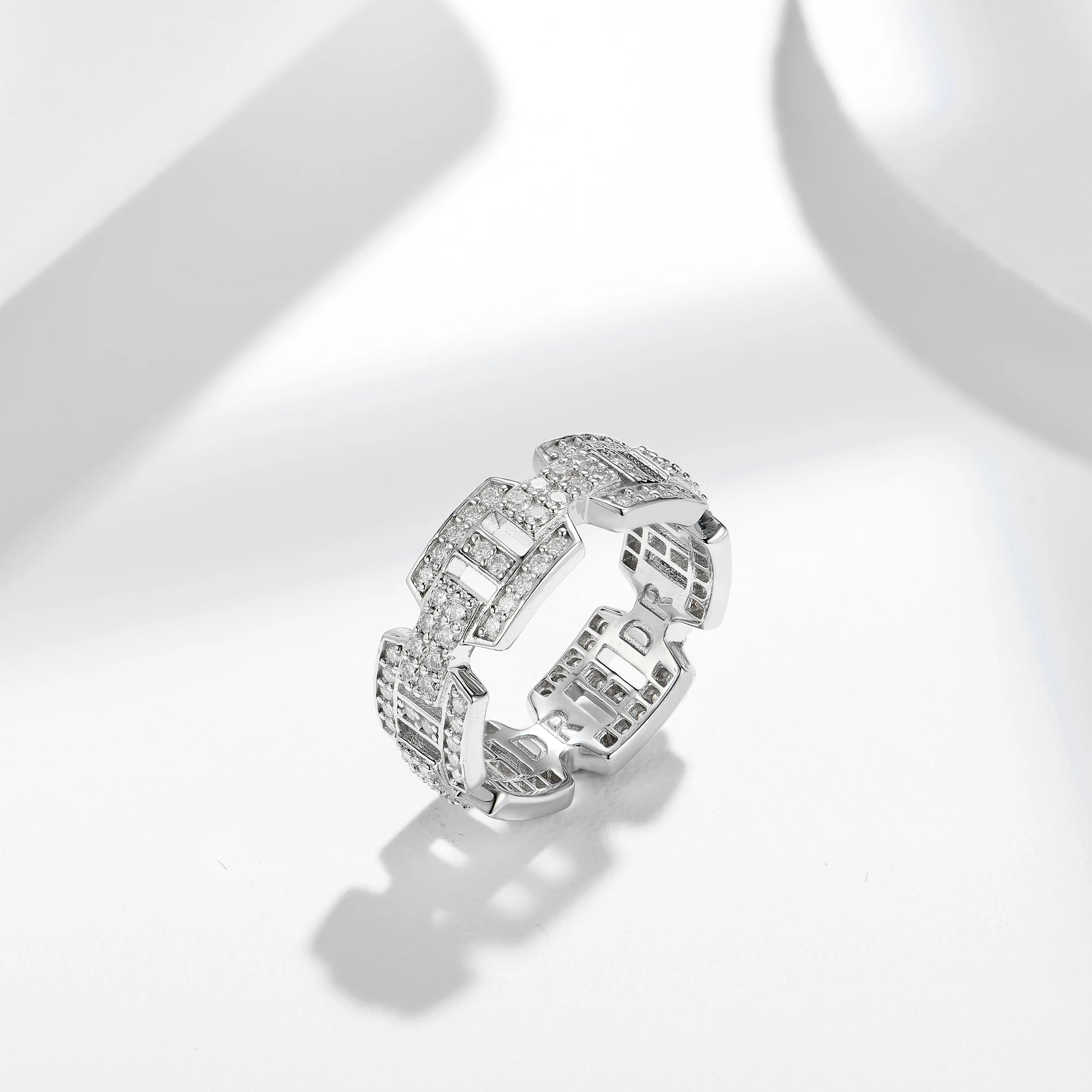 Moissanite Tennis Eternity Bricklay Band Ring in Sterling Silver: This stunning ring showcases a unique brick-layer-inspired design, seamlessly blending elegance and modern style. With sparkling moissanites arranged in a tennis eternity pattern, the ring offers endless brilliance on a sleek sterling silver band. Ideal for adding a touch of luxury to any look, its intricate craftsmanship makes it a timeless piece. ✨💍 Perfect for special occasions or daily wear, this ring shines with sophistication.
