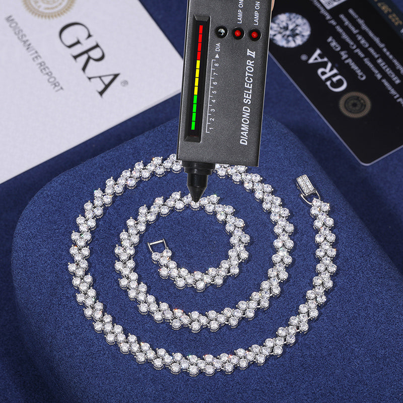 Add a touch of romance to your collection with the Moissanite Three Stone Heart Tennis Link Chain Necklace or Bracelet in sterling silver. This stunning chain features three radiant heart-shaped moissanite stones, set along a classic tennis link design for a delicate yet luxurious look. Crafted from high-quality sterling silver, this piece symbolizes love, making it perfect for special occasions or as a meaningful gift. Elevate any outfit with the timeless elegance and sparkle of this beautiful heart-themed chain. 💎💖