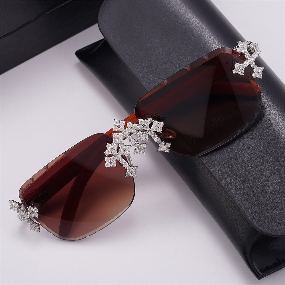 MOISSANITE TRIPLE CROSS BRIDGE SUNGLASSES