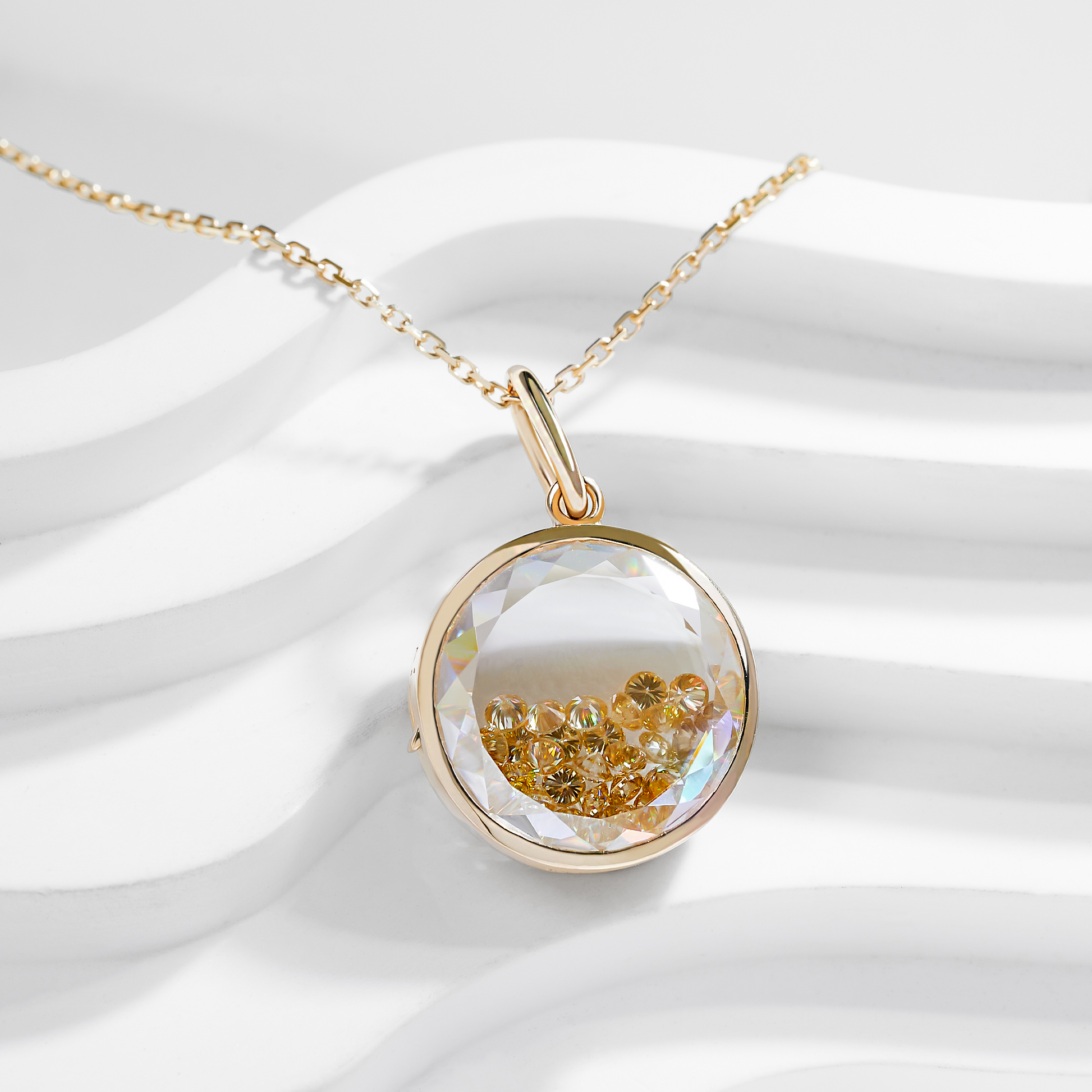 MOISSANITE VAULT PORTRAIT CUT PENDANT IN SOLID GOLD: Crafted in solid gold, this portrait-cut pendant features a crystal-clear window that reveals loose gemstones suspended within, creating a striking floating effect. Designed as a modern keepsake, it blends fine craftsmanship with emotional value, allowing light to reflect beautifully from every angle. Minimal yet expressive, it’s perfect for everyday wear or meaningful gifting. A refined statement piece that holds sparkle, memory, and individuality in one timeless design ✨💛