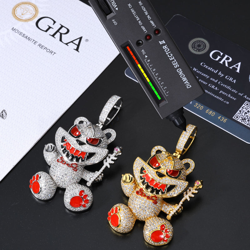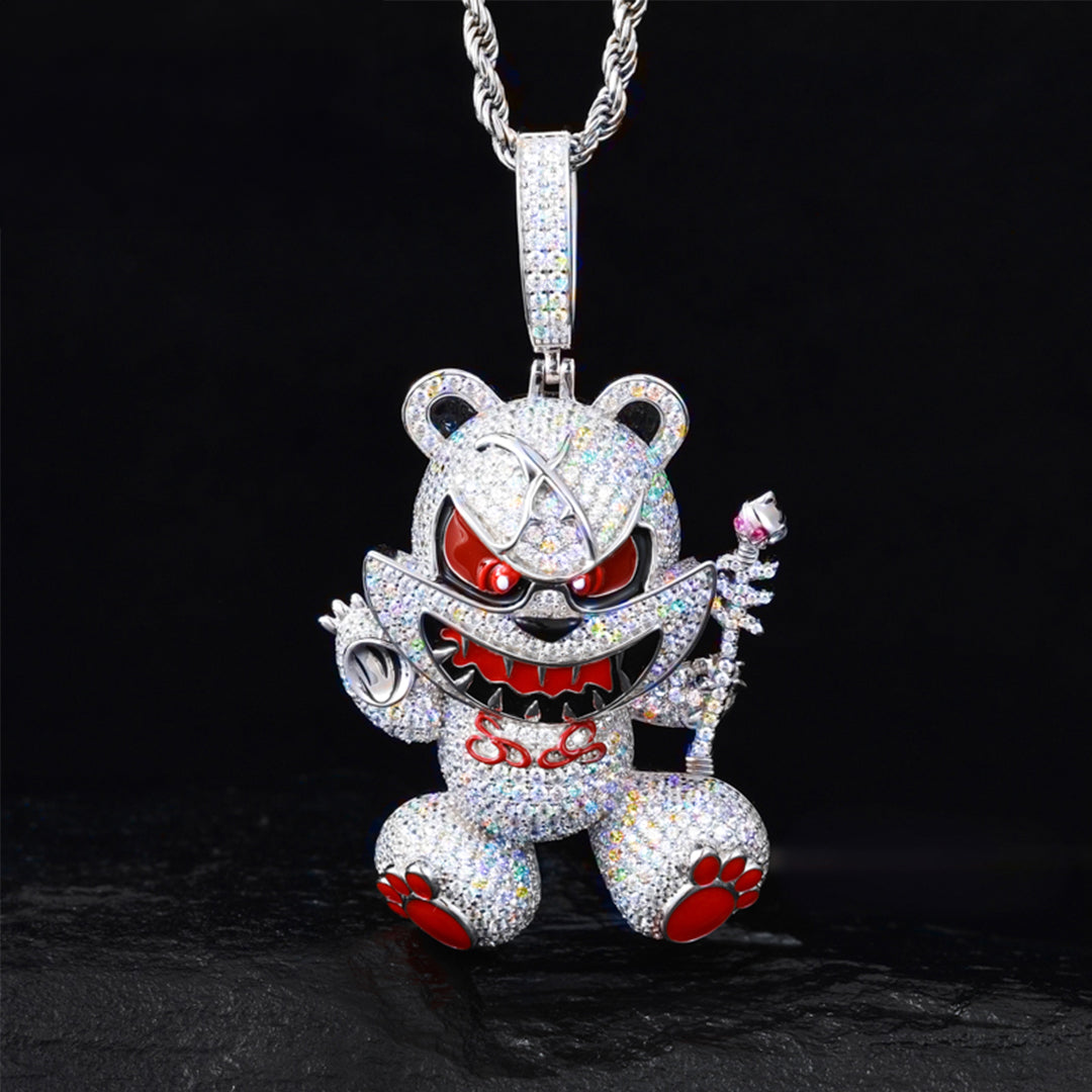 MOISSANITE VIOLENT BEAR PENDANT IN STERLING SILVER