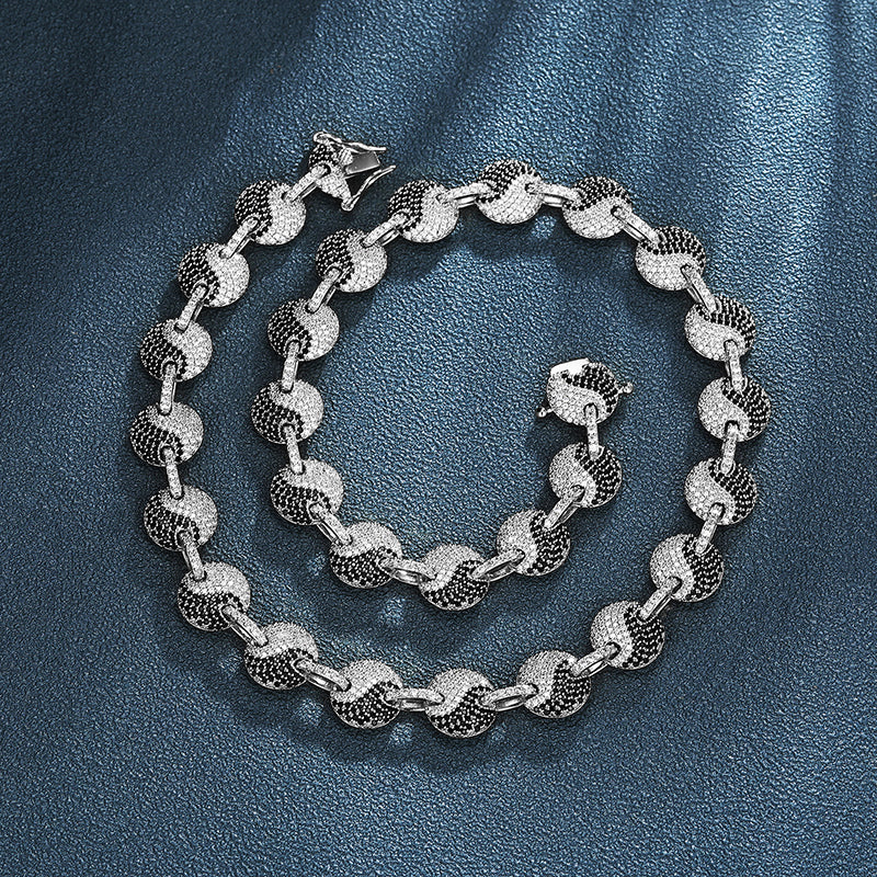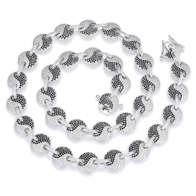 MOISSANITE YIN YANG LINK CHAIN BRACELET/NECKLACE IN STERLING SILVER