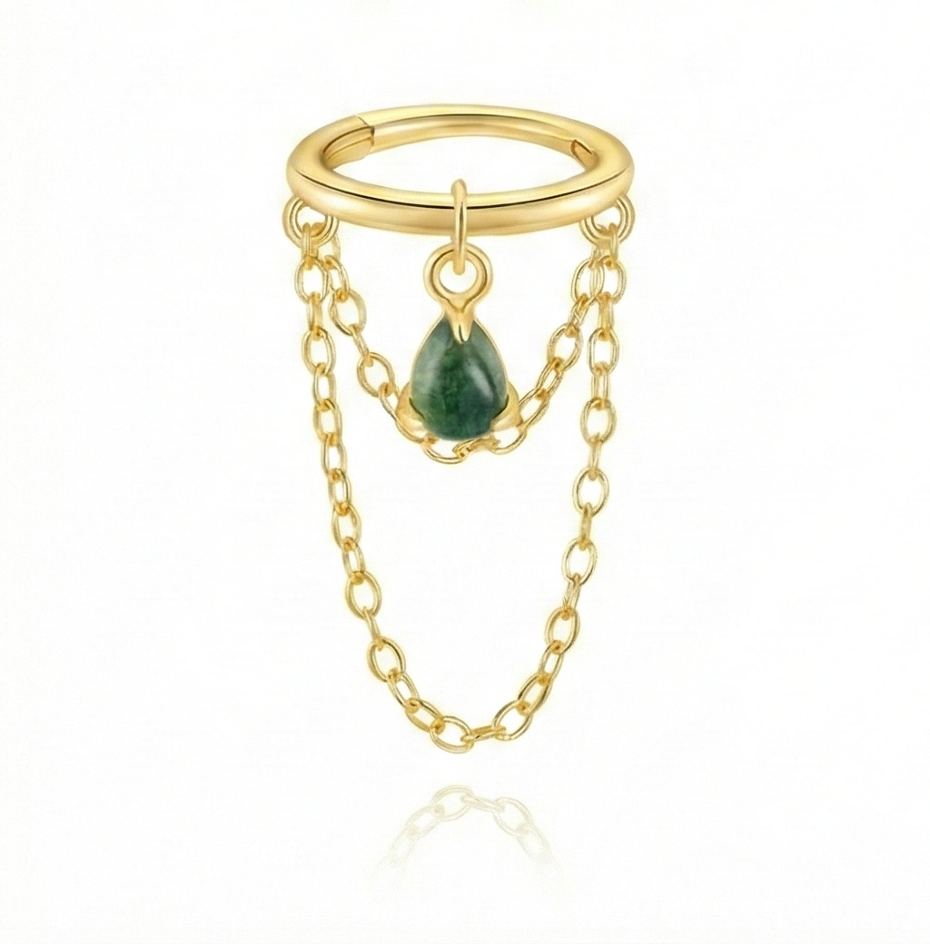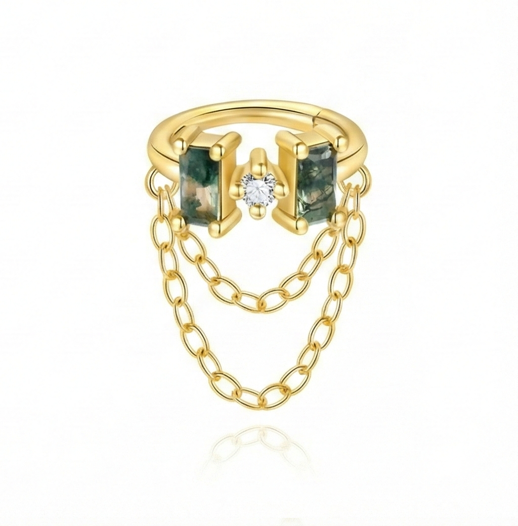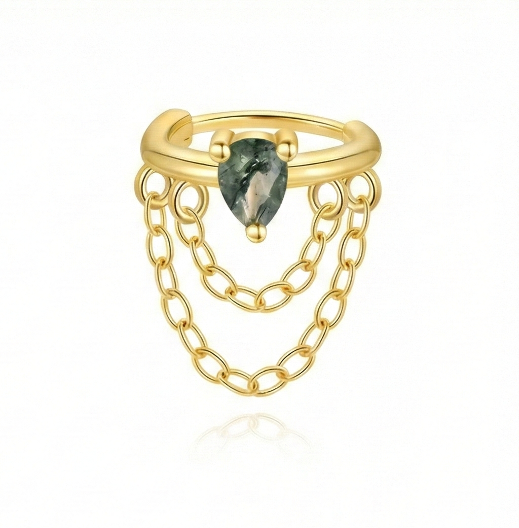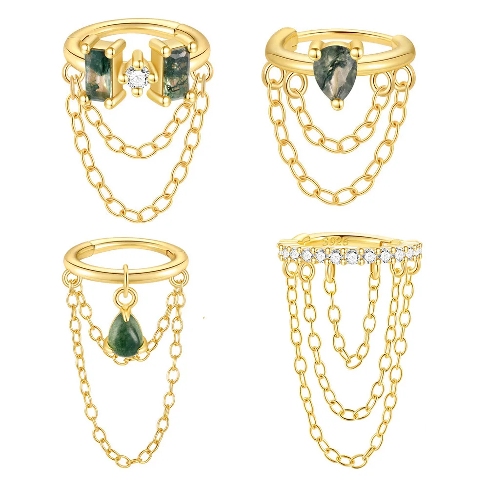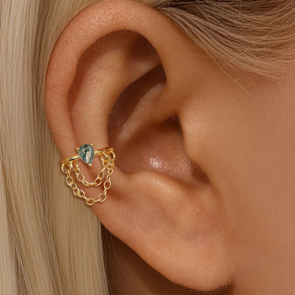 MOSS AGATE CHAIN TASSEL EAR CUFF IN STERLING SILVER