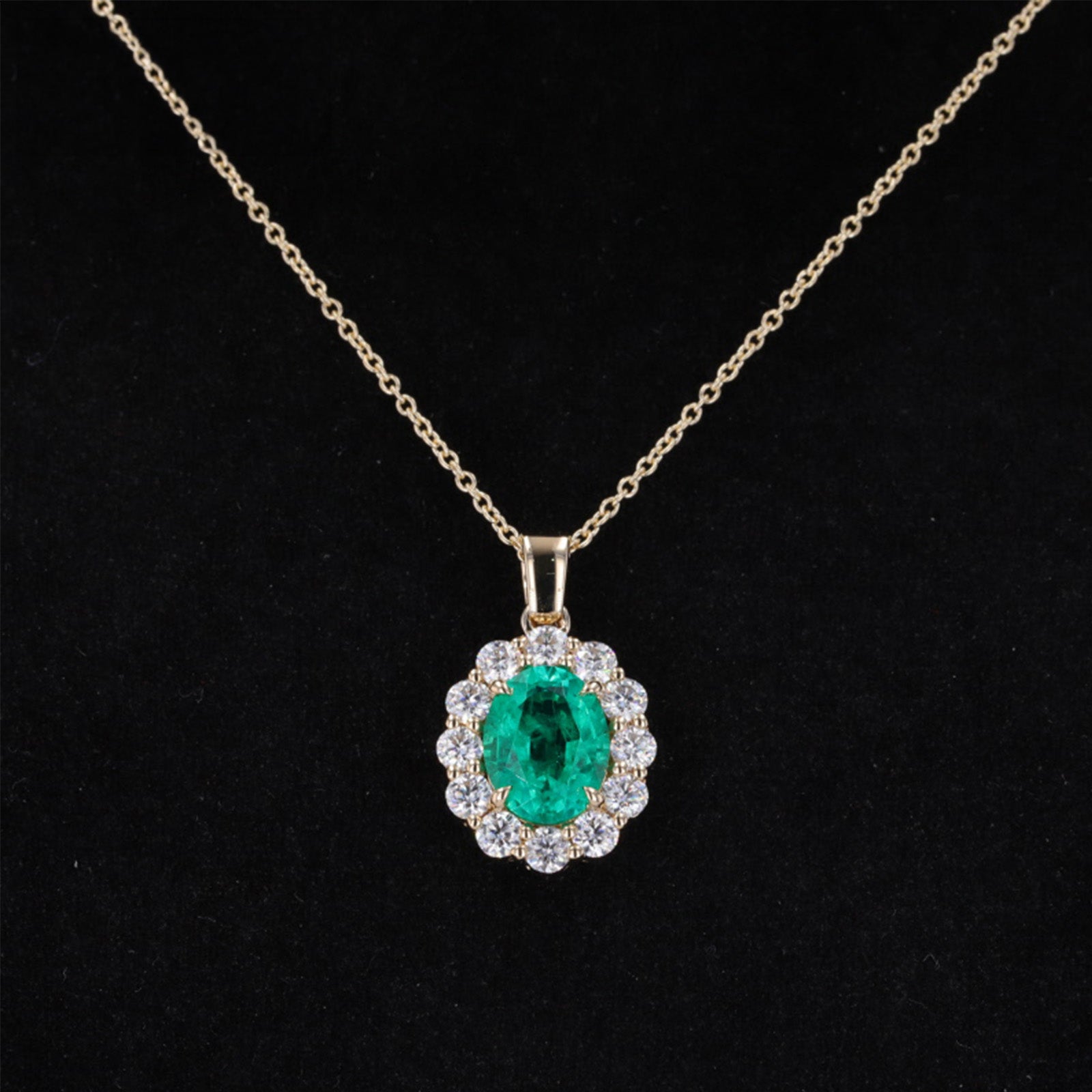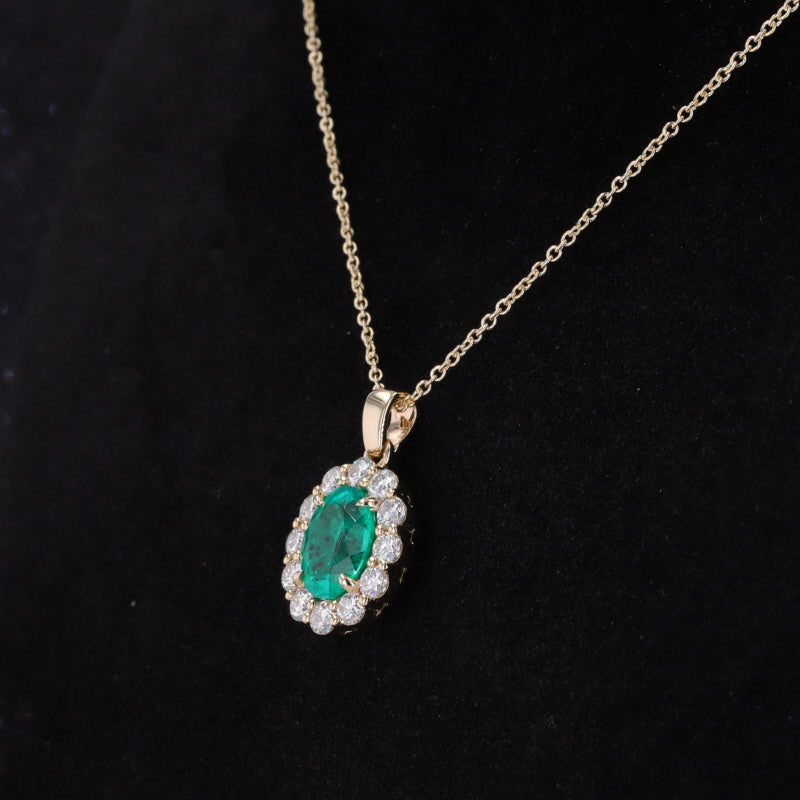 Adorn yourself with the captivating beauty of our Lab Grown Colombian Green Sapphire Gemstone Necklace, elegantly set in a 9K gold. Featuring an exquisite oval-cut gemstone, this necklace adds a touch of sophistication to any ensemble.