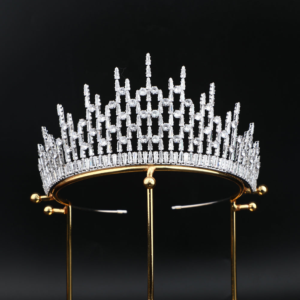 The Palatial Diadem Tiara Crown radiates regal elegance, crafted with meticulous attention to detail and adorned with shimmering 5A+ cubic zirconia. This exquisite tiara is perfect for pageants, bridal events, and other significant occasions where you want to make a grand statement. Its opulent design and sparkling accents ensure you'll shine like royalty, captivating everyone in your presence. Elevate your look with this stunning crown, a true symbol of sophistication and grace. 🌟💖