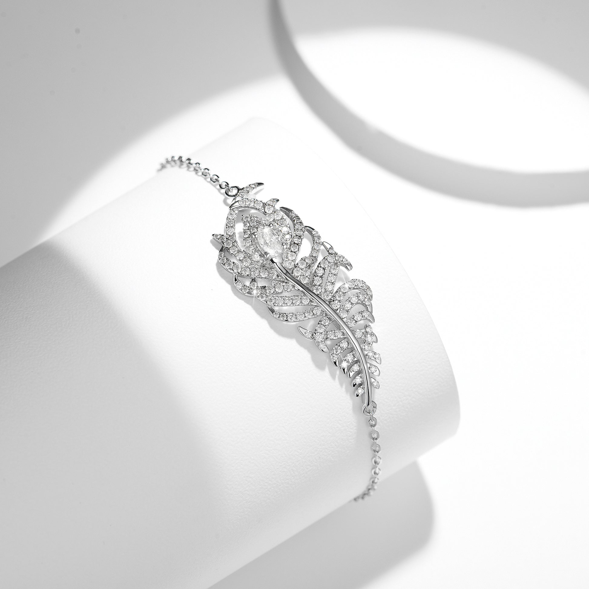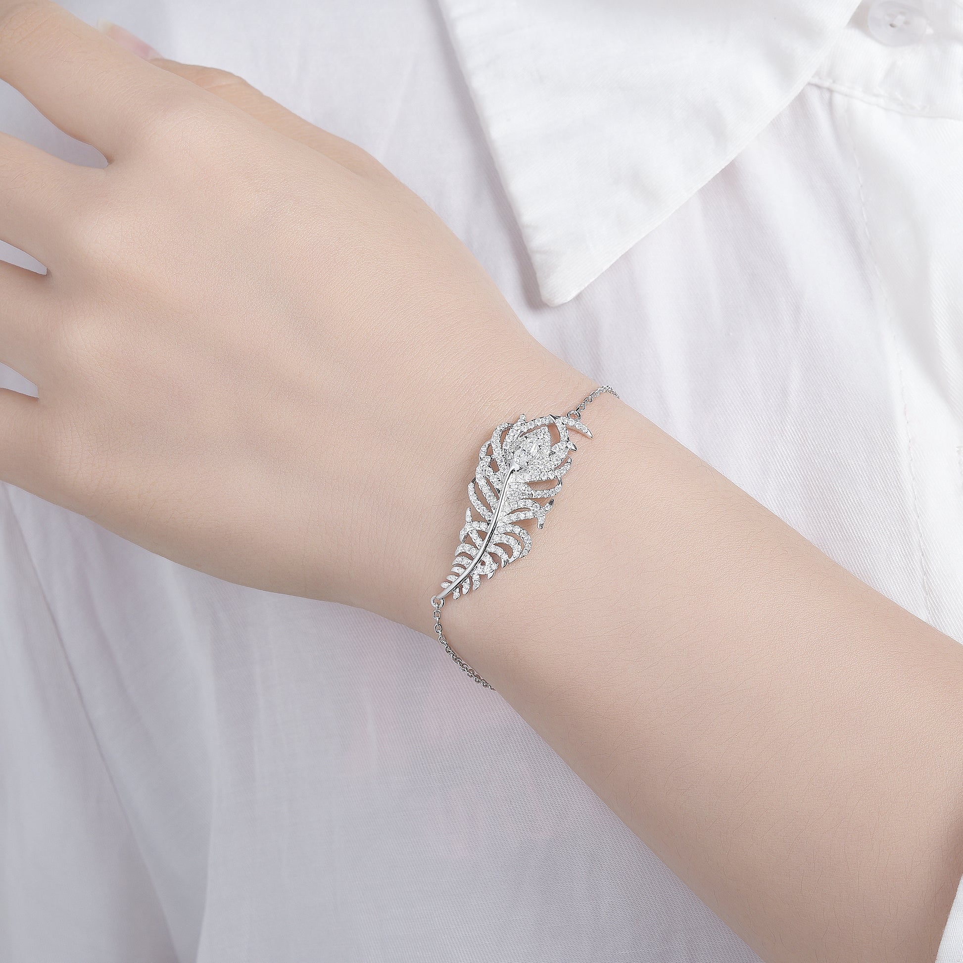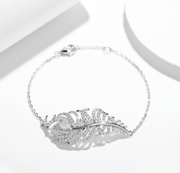 PEACOCK FEATHER MOISSANITE BRACELET IN STERLING SILVER