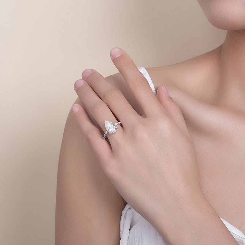 PEAR CUT MOISSANITE ENGAGEMENT RING IN STERLING SILVER
