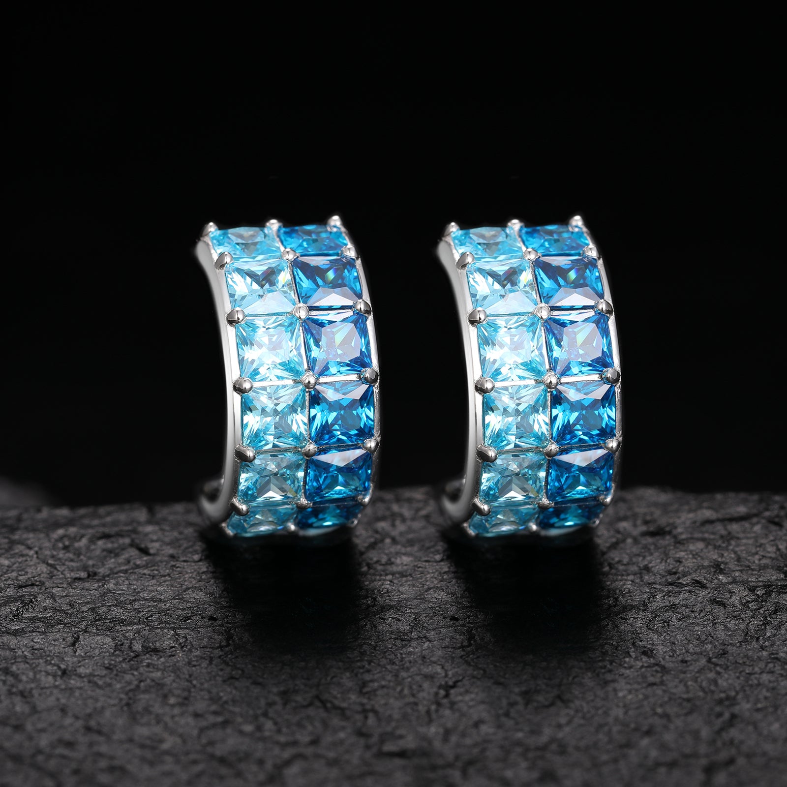 PRINCESS CUT BLUE CZ CUFF EARRINGS IN STERLING SILVER