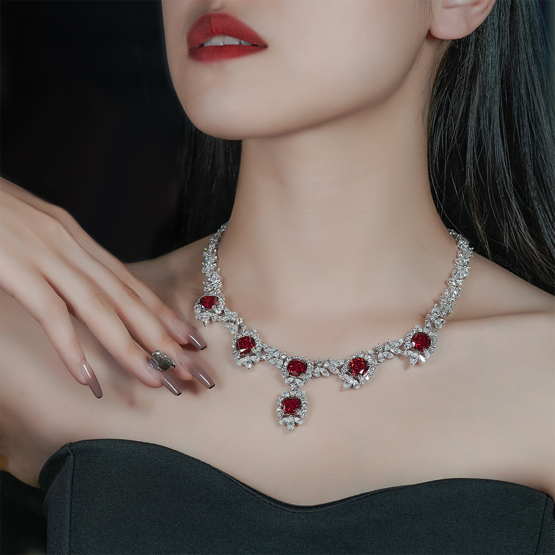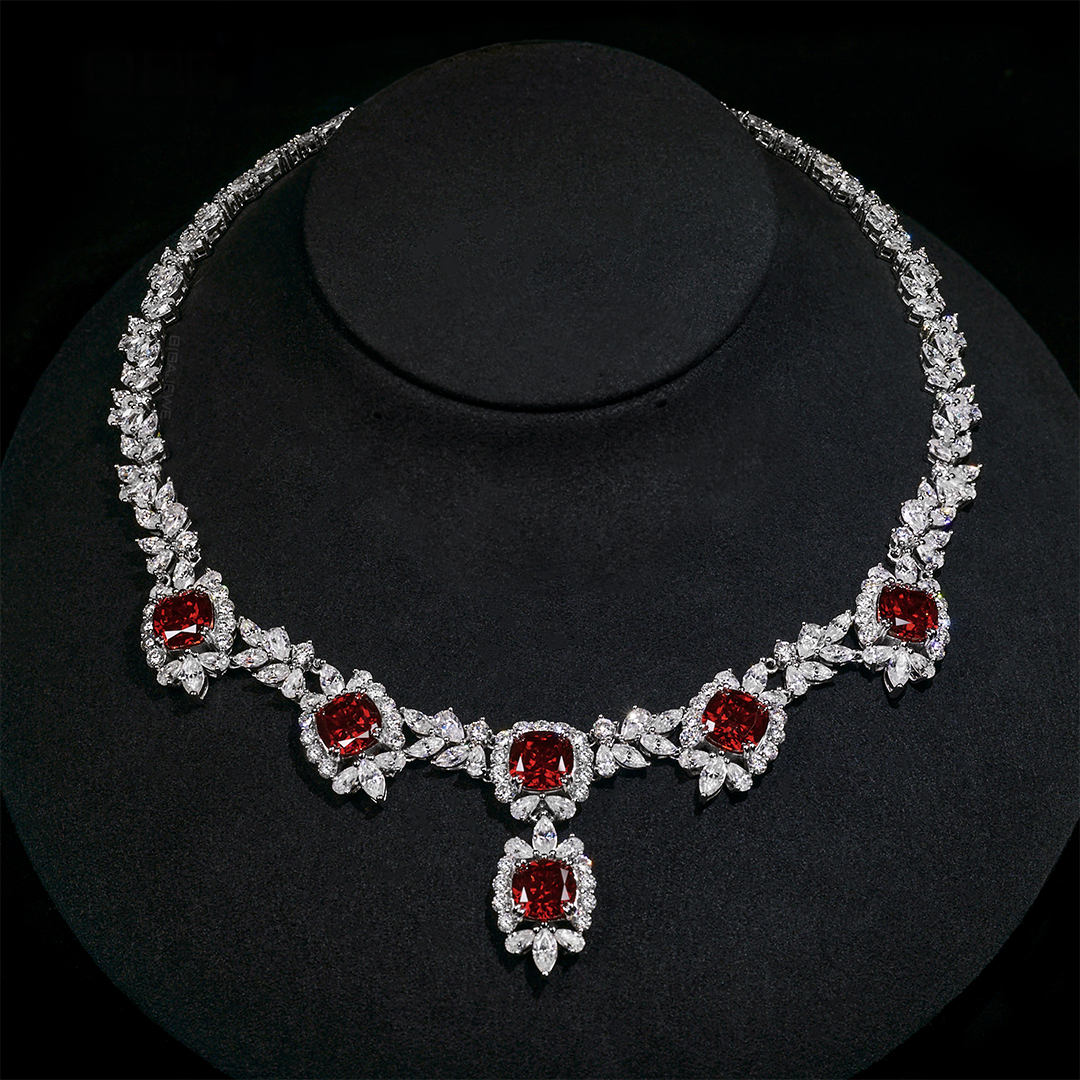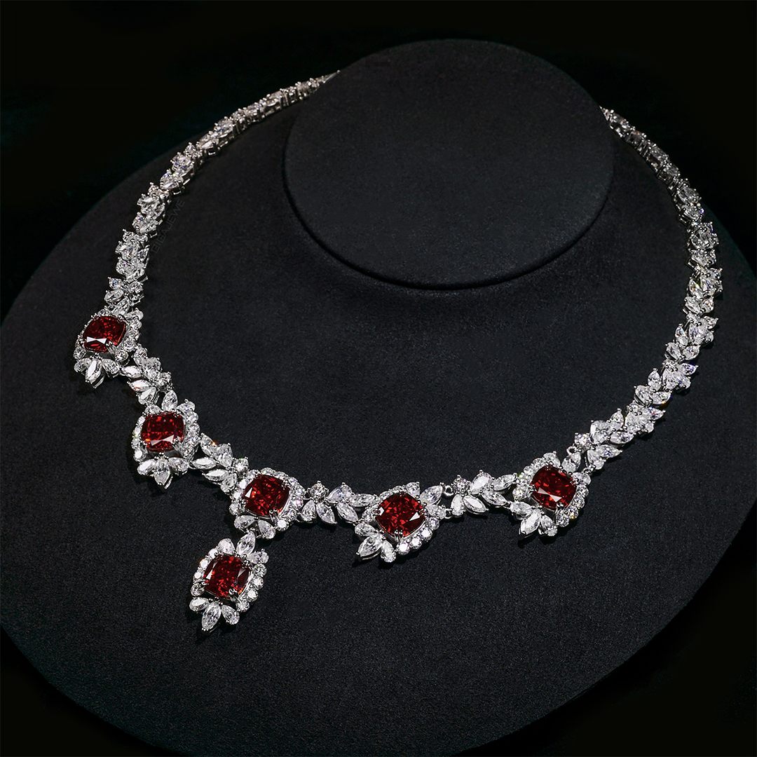 RED CUSHION CUT MOISSANITE NECKLACE IN STERLING SILVER