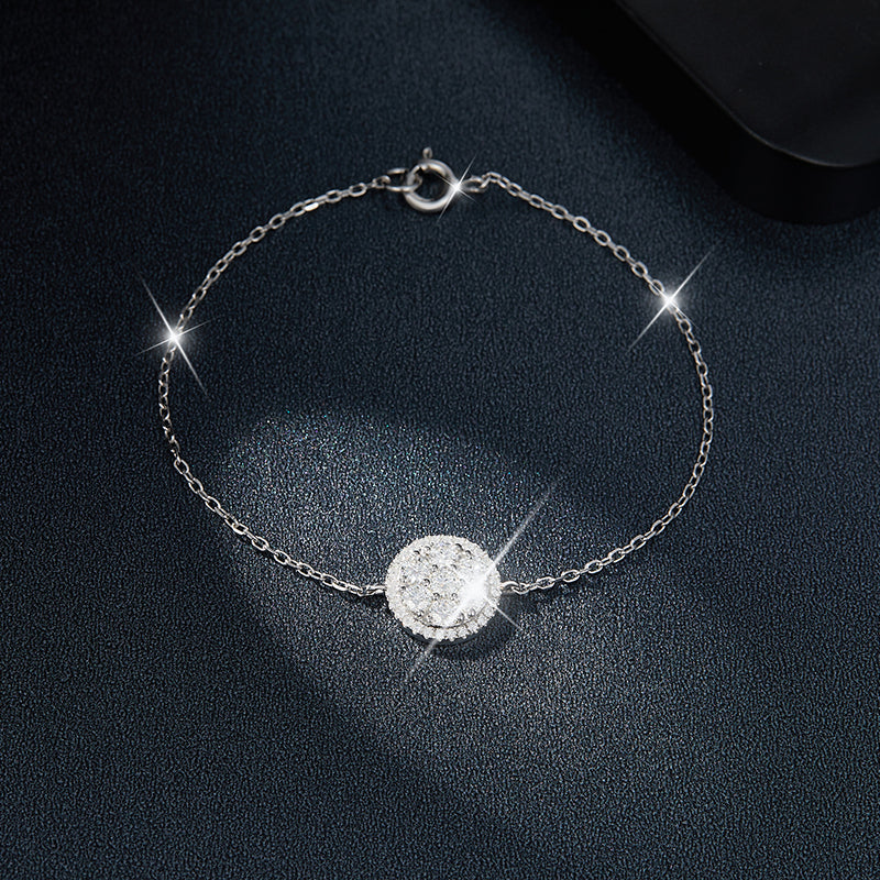 ROUND CHARM MOISSANITE DIAMOND BRACELET IN STERLING SILVER