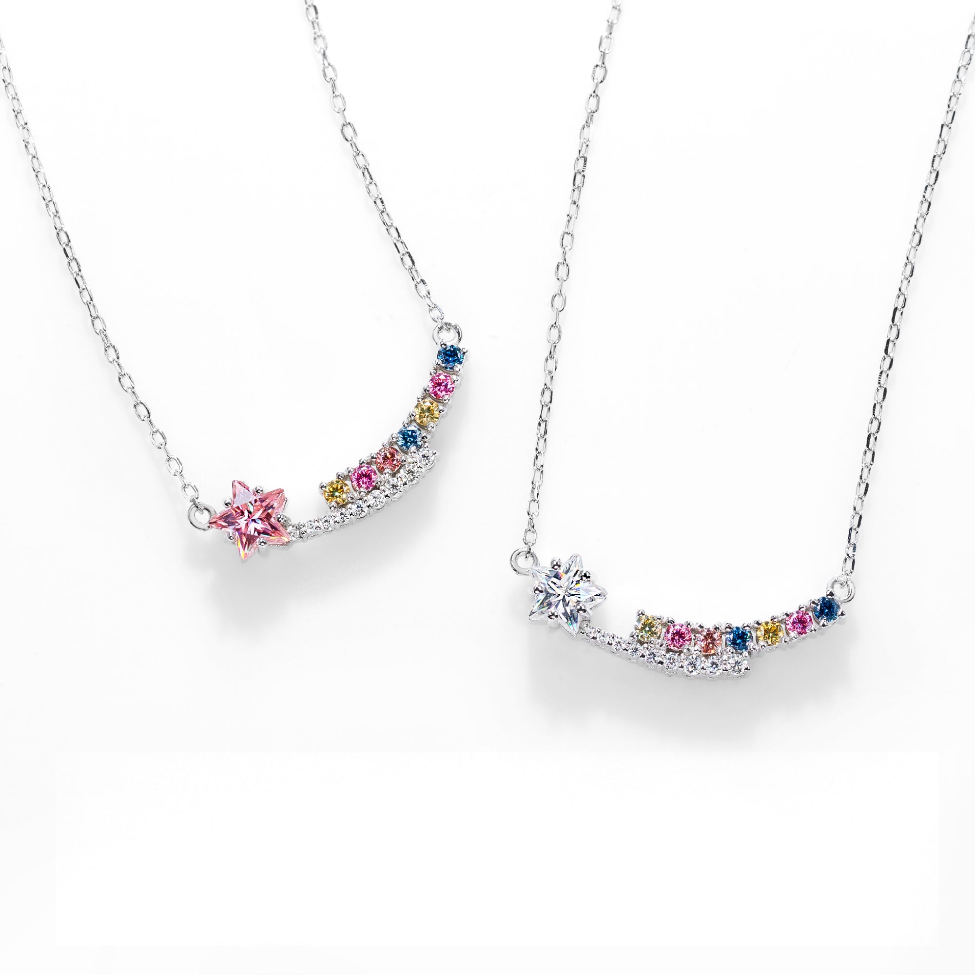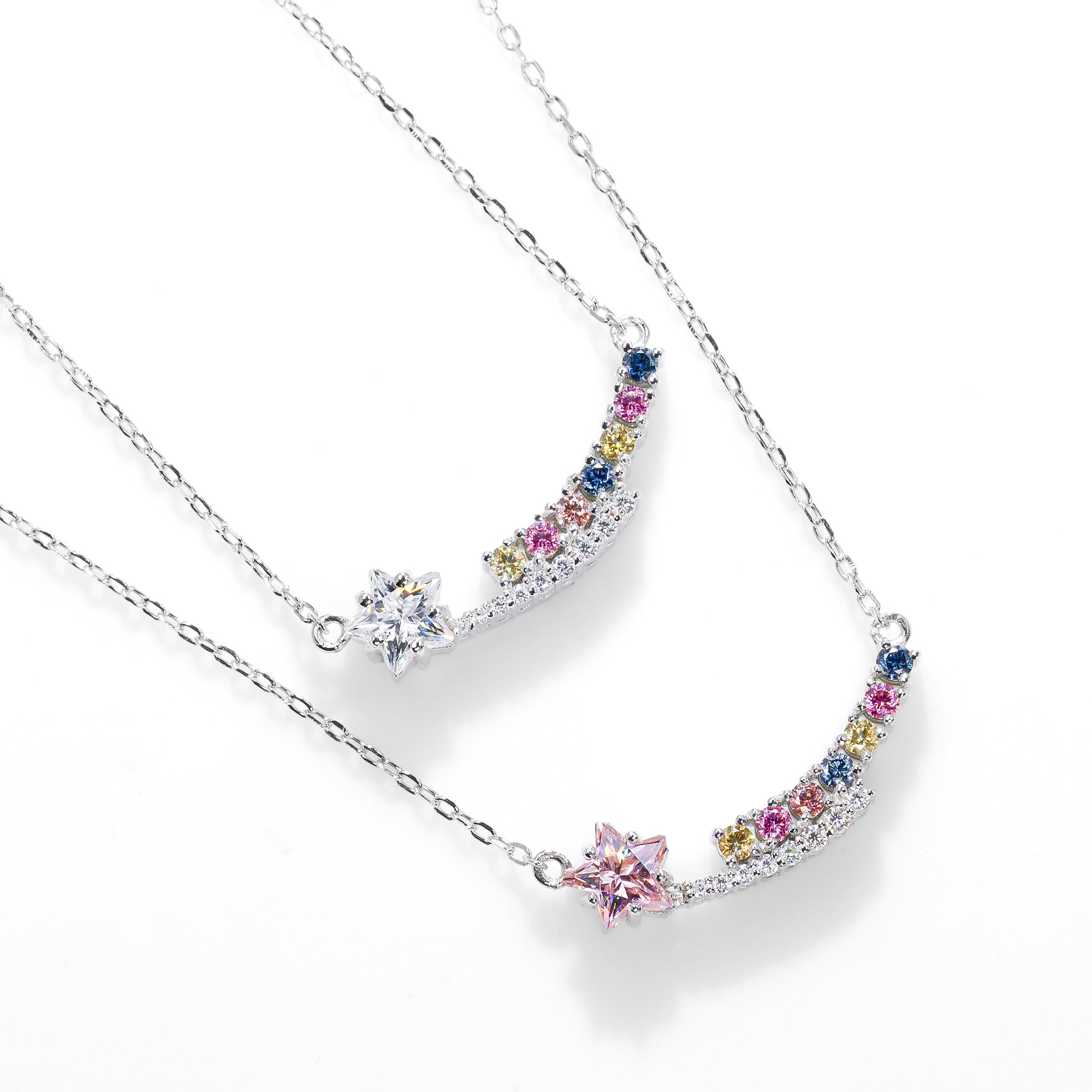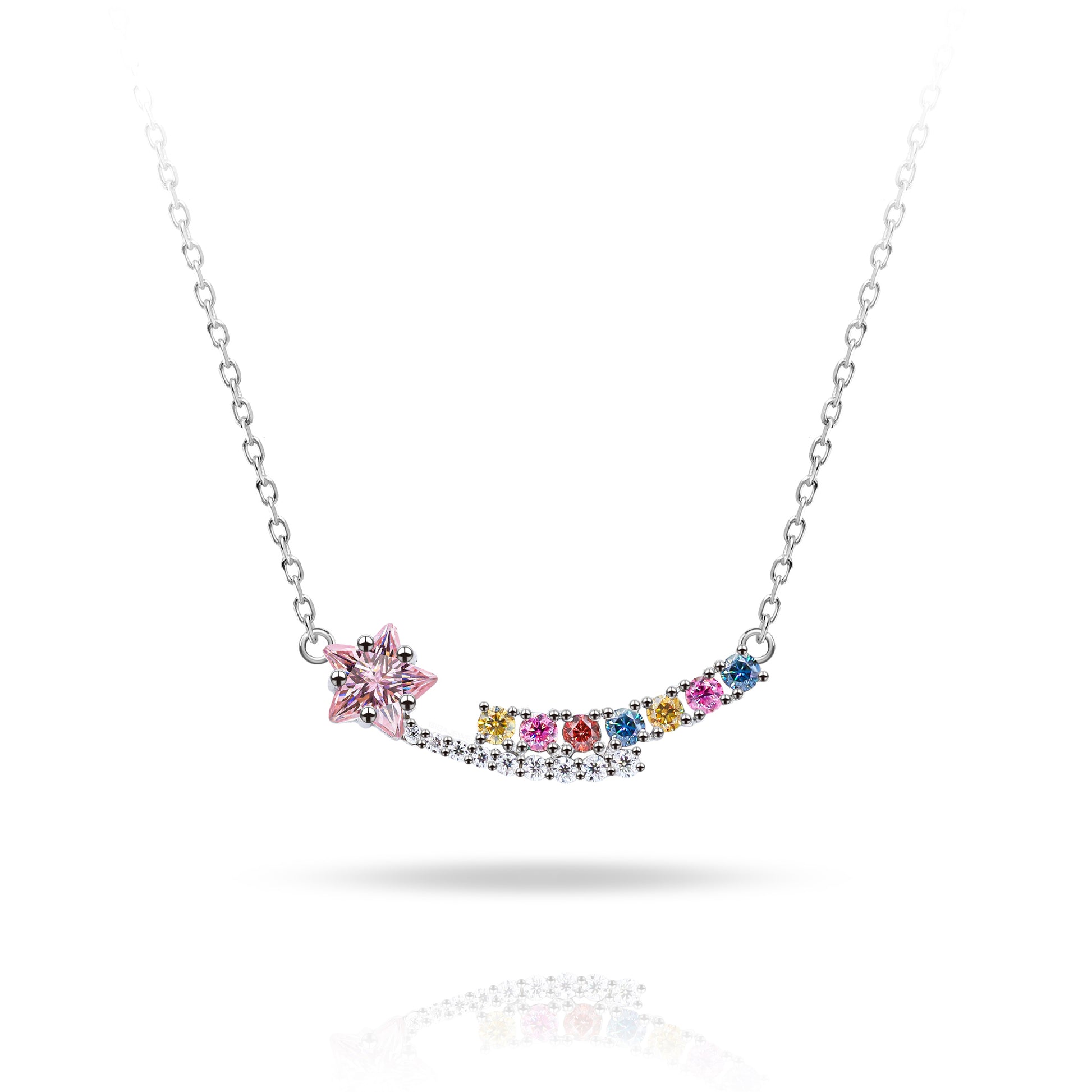18K GOLD PLATED STAR CUT RAINBOW NECKLACE IN STERLING SILVER