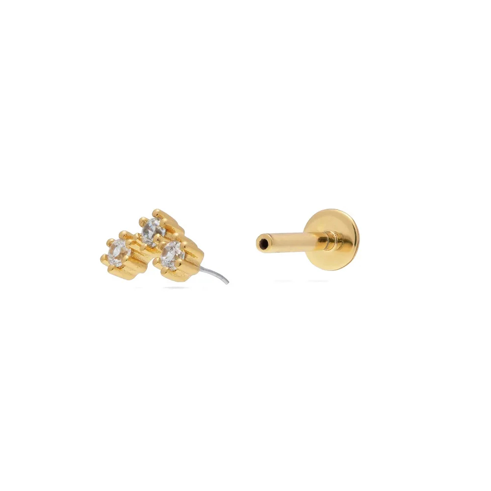 Stellara Push-In Piercing in Sterling Silver: Designed for effortless wear and everyday comfort, this piece features a secure push-in (threadless) post crafted in high-polish sterling silver. The sleek, minimalist setting holds the stone firmly while allowing quick insertion and removal without twisting. Ideal for cartilage, helix, tragus, or lobe piercings, it delivers a clean, modern look with a smooth, flat back that sits comfortably against the skin. A refined essential for stacking, layering, and long-term wear.