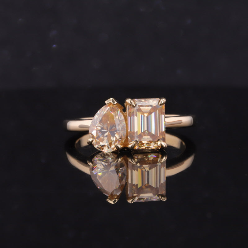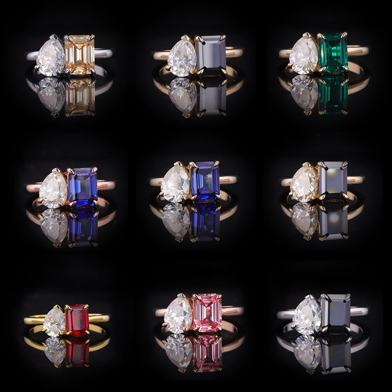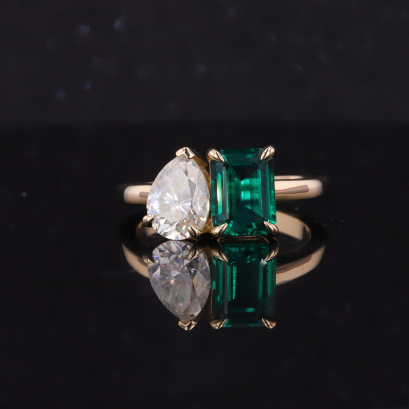 LAB GROWN GEMSTONE + MOISSANITE TOI ET MOI ENGAGEMENT RING 14K WHITE/YELLOW/ROSE GOLD