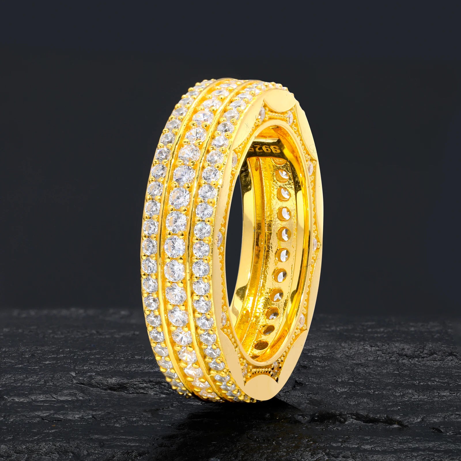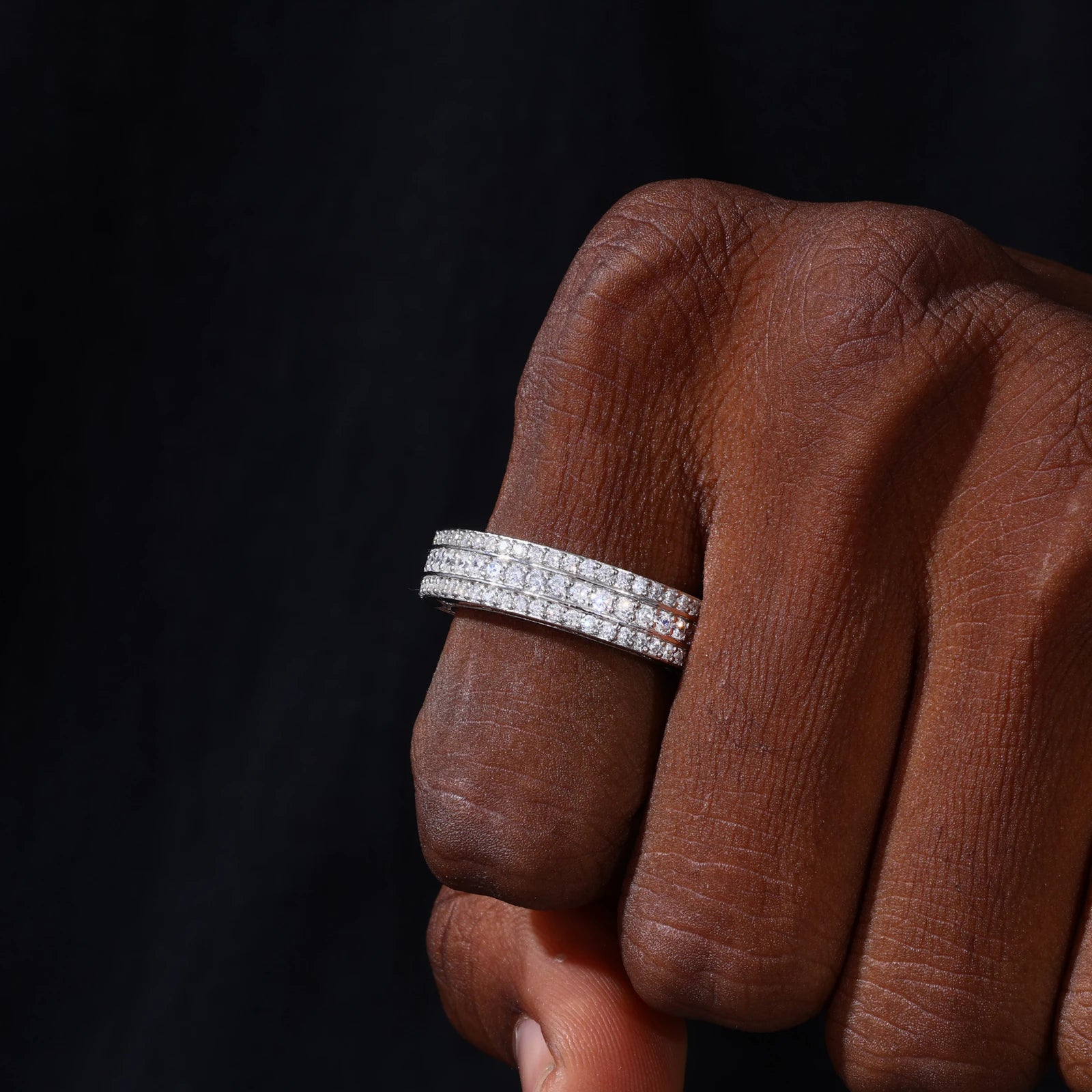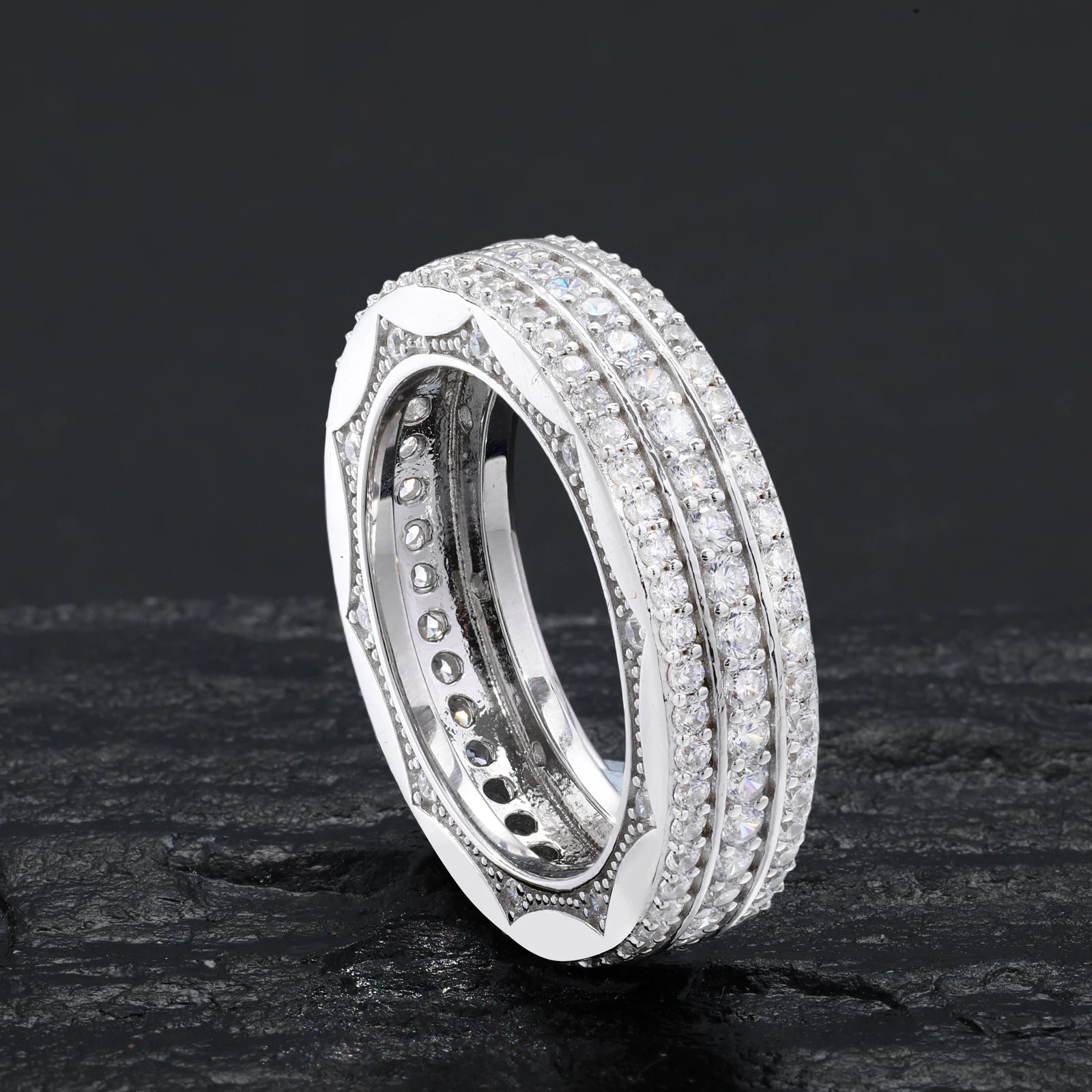 Designed for maximum brilliance and timeless appeal, the Triple Row Moissanite Eternity Ring showcases three perfectly aligned rows of pavé-set moissanite stones that wrap seamlessly around the band. This continuous eternity design delivers unmatched sparkle from every angle, creating a bold yet refined statement on the finger.