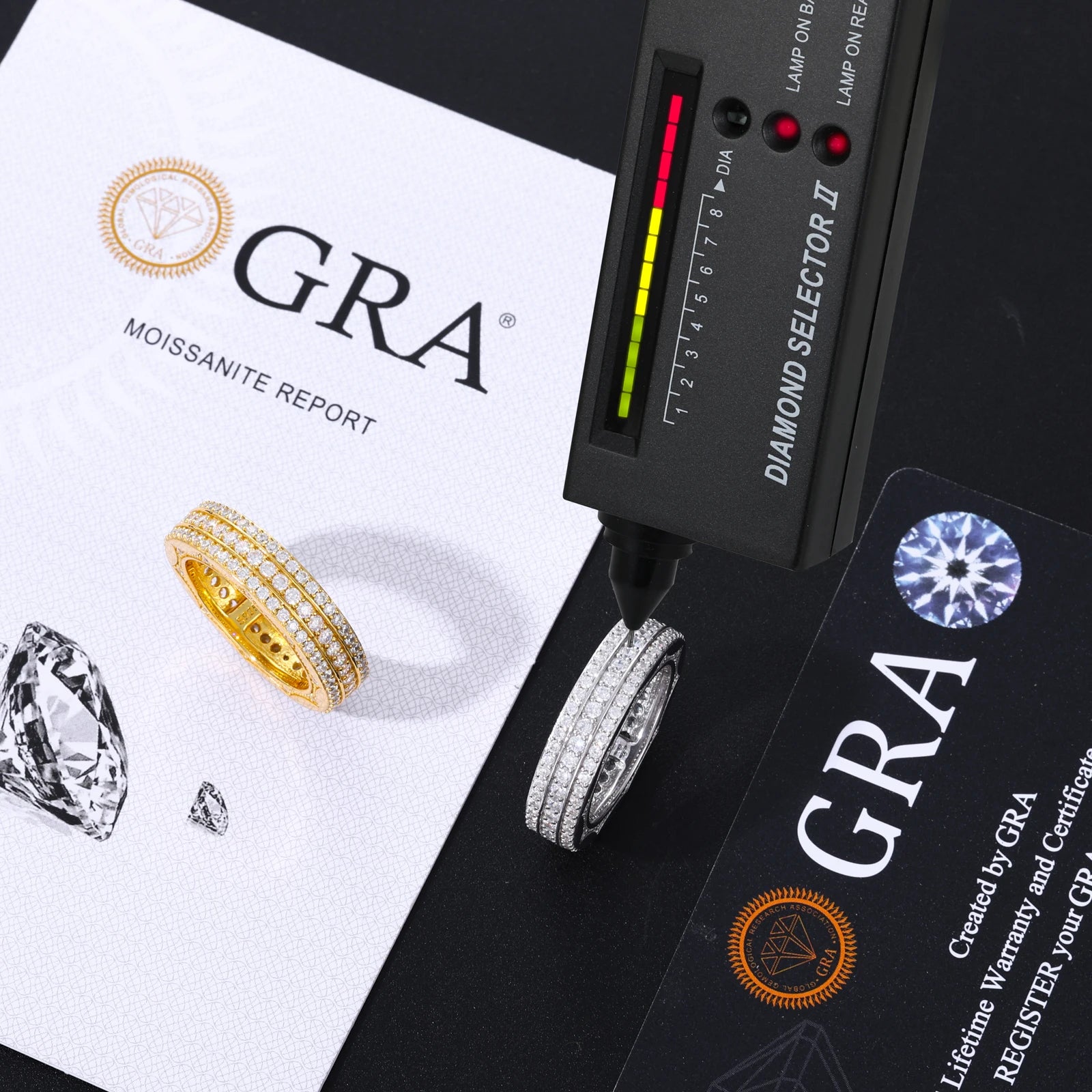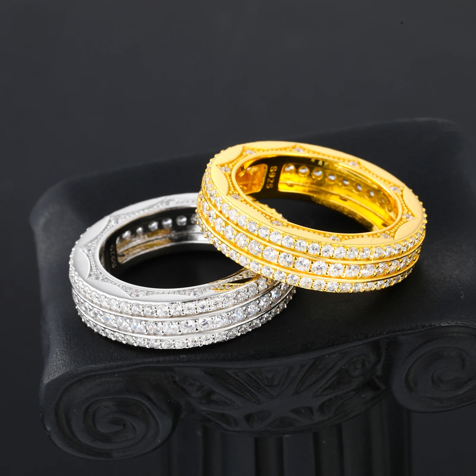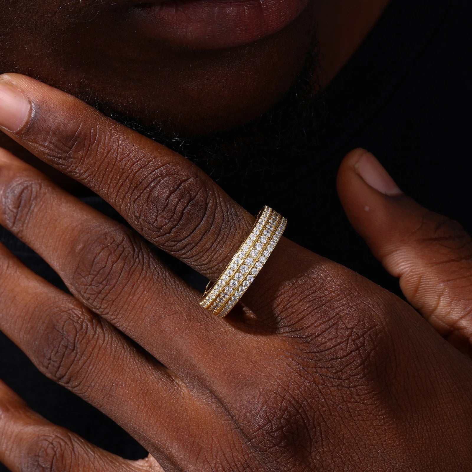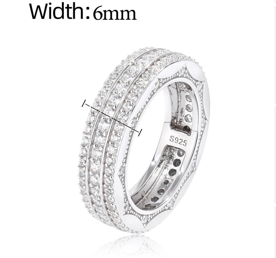 Designed for maximum brilliance and timeless appeal, the Triple Row Moissanite Eternity Ring showcases three perfectly aligned rows of pavé-set moissanite stones that wrap seamlessly around the band. This continuous eternity design delivers unmatched sparkle from every angle, creating a bold yet refined statement on the finger.