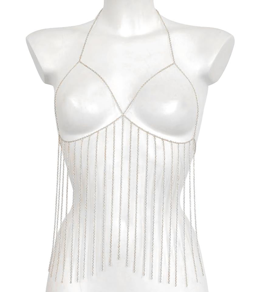 VERTICAL FRINGE BODY CHAIN BRALETTE