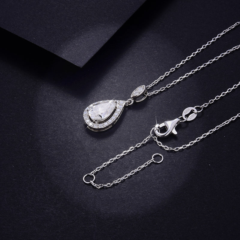 WATER-DROP MOISSANITE PENDANT IN STERLING SILVER